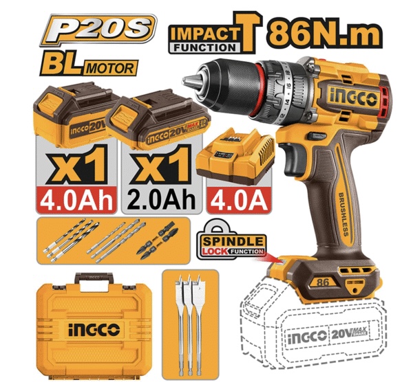 دریل ضربهای شارژی 20 ولت اینکو مدل CIDLI20868