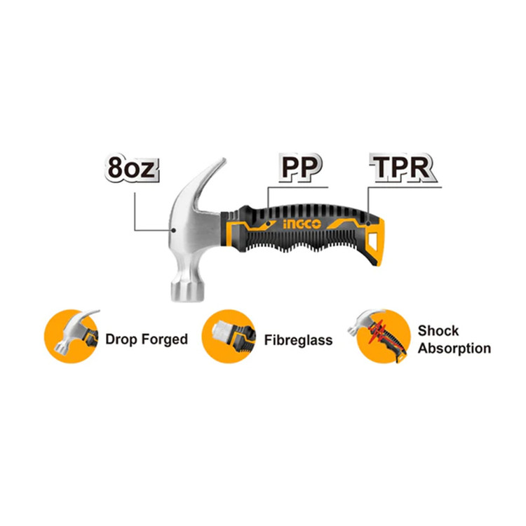 سایر مشخصات: سطح سخت کاری شده برای استقامت بالاتر و کاربری بهینه دارای مقاومت بالا در مقابل ضربه های سخت طراحی ارگونومیک و سازگار با دست ساخت چین تحت لیسانس آمریکا قابلیت میخکشی دسته ضد شوک وزن 220 گرمی