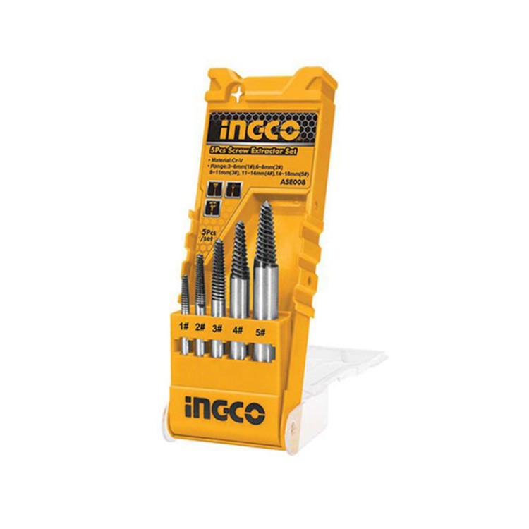 Ingco Ase008 Screw Extractor دارای ساختاری خاص است که این امکان را به شما میدهد تا با استفاده از سایز مناسب، پیچ و … را به راحتی و بدون خرابی از سطح مورد نظر جدا کنید.