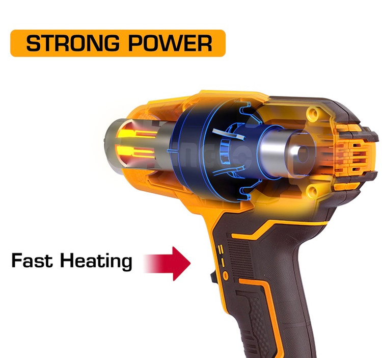 حداقل و حداکثر دما 300 و 550 درجه سانتی گراد همراه با دو باتری ، یک شارژر و سه عدد نازل مختلف جریان هوا 100 و 200 لیتر در دقیقه گارانتی 12 ماهه شرکتی