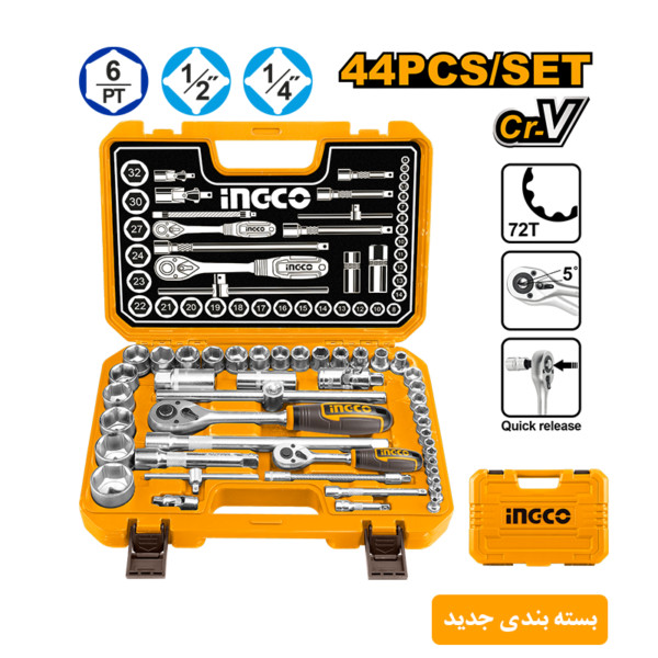 اقلام همراه: ست 44 عددی 13 عدد سری بکس شش پر درایو 1/4 18 عدد سری بکس شش پر درایو 1/2