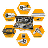 ست بکس 1/2 اینچ اینکو 24 عددی اینکو مدل HKTS0243 از مواد با کیفیت بالا ساخته شده است و به همین دلیل بسیار بادوام و مقاوم است، دارای طراحی ارگونومیک است و به همین دلیل استفاده از آن برای مدت طولانی راحت است، دارای قفل جغجغه است که به همین دلیل استفاده از آن آسان است و همچنین شامل پایه کمکی است که به همین دلیل دسترسی به پیچ و مهره ها در فضای محدود آسان تر است.