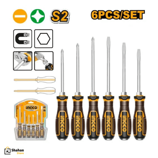 اقلام همراه: انواع پیچگوشتیها: • تخت / Slotted: اندازههای مختلف (مانند ۶٫۵×۱۰۰، ۶٫۵×۱۵۰، ۸×۲۰۰ میلیمتر) • چهارسو / Phillips: اندازههایی مثل PH2×۱۰۰، PH2×۱۵۰، PH3×۲۰۰ میلیمتر